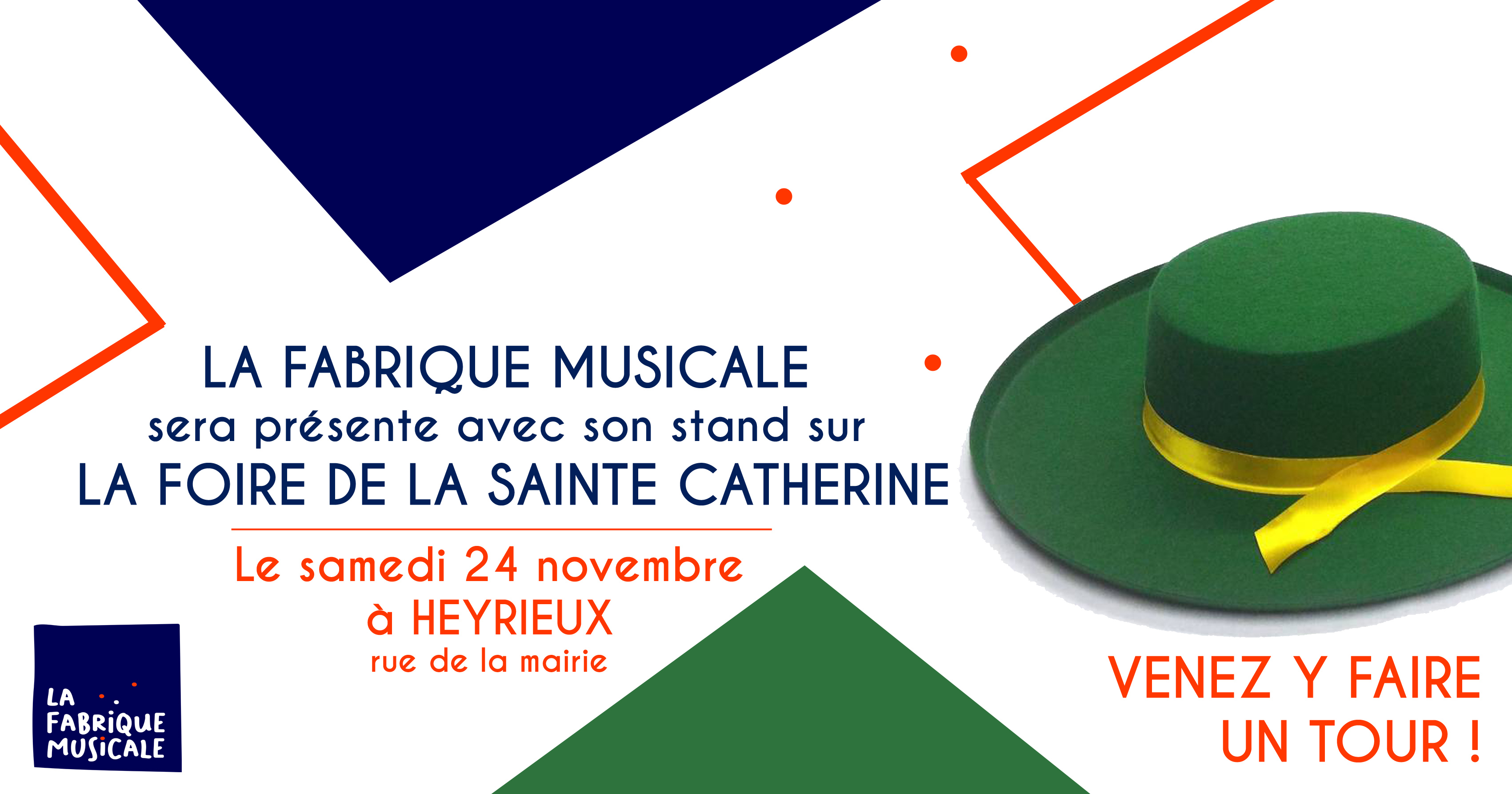 Le samedi 24 novembre 2018, La Fabrique musicale participera à la 475e Foire de la Sainte-Catherine à Heyrieux. Comme chaque année, les adhérents vous accueilleront sur le stand de l’association situé dans la rue de la mairie. Ils vendront des gâteaux confectionnés par les musiciens au profit de l’achat d’instruments et de partitions.