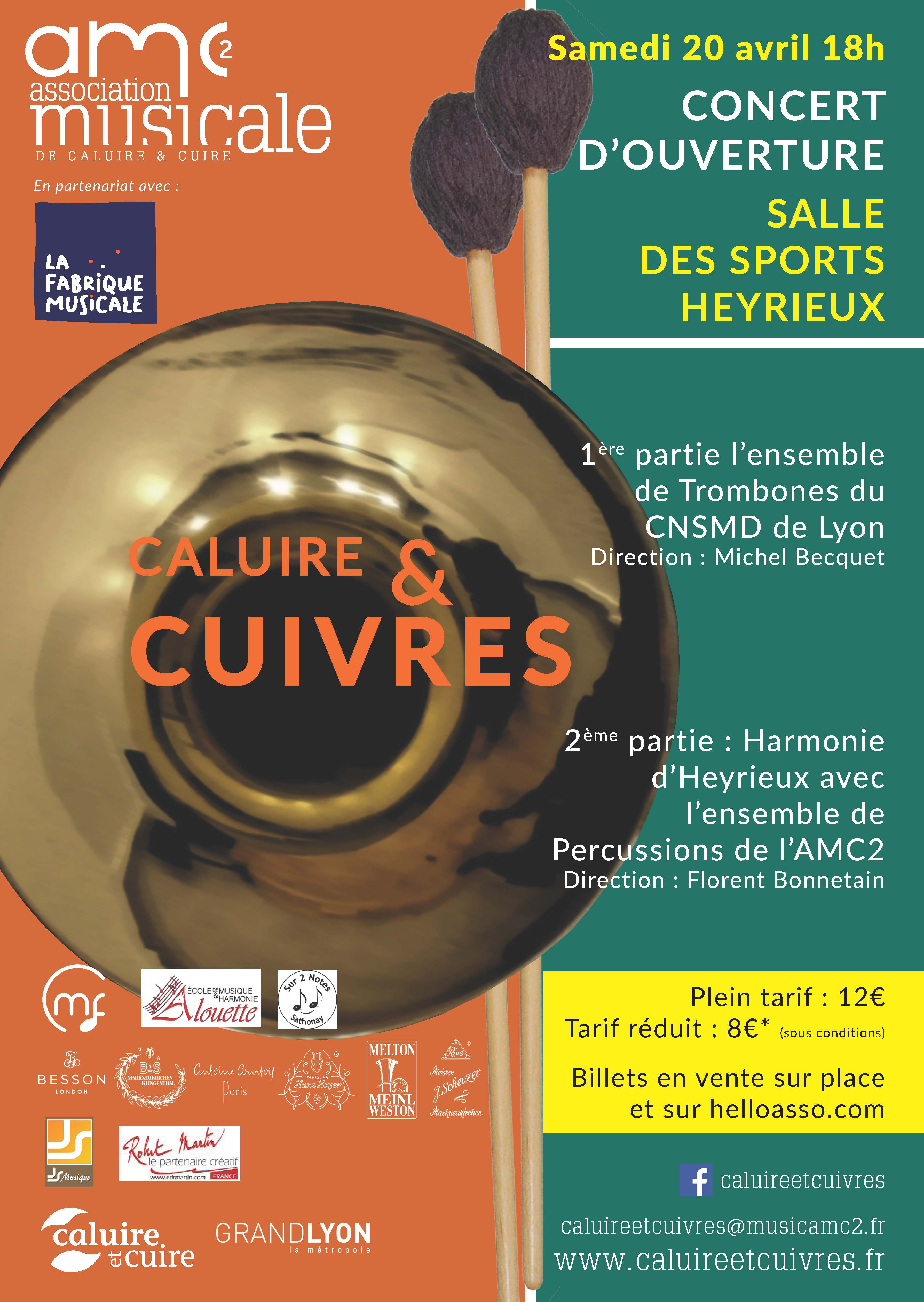 C’est un événement exceptionnel qui se tiendra le samedi 20 avril à 18h00 à la Salle des sports d’Heyrieux. La Fabrique musicale accueille le Concert d’ouverture de Caluire et Cuivres, un stage de musique organisé par l’AMC2, l’école de musique de Caluire, et encadré par des musiciens prestigieux.