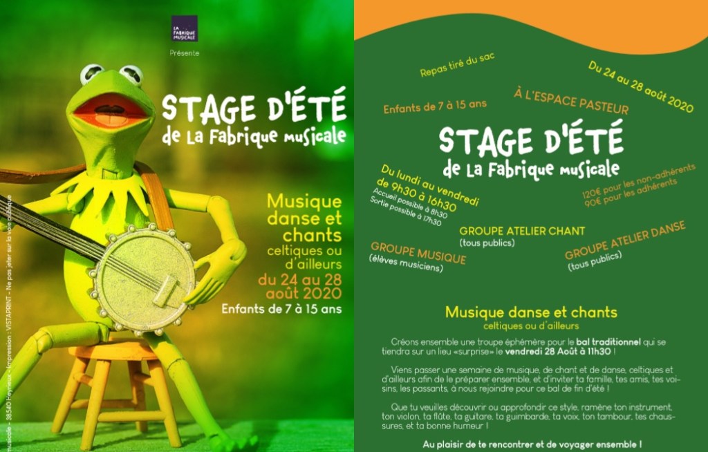 C’est quand ? du 24 au 28 aout 2020 de 9h30 à 16h30 (possibilité d’accueil à partir de 8h30 et jusqu’a 17h30). Repas du midi tiré du sac.