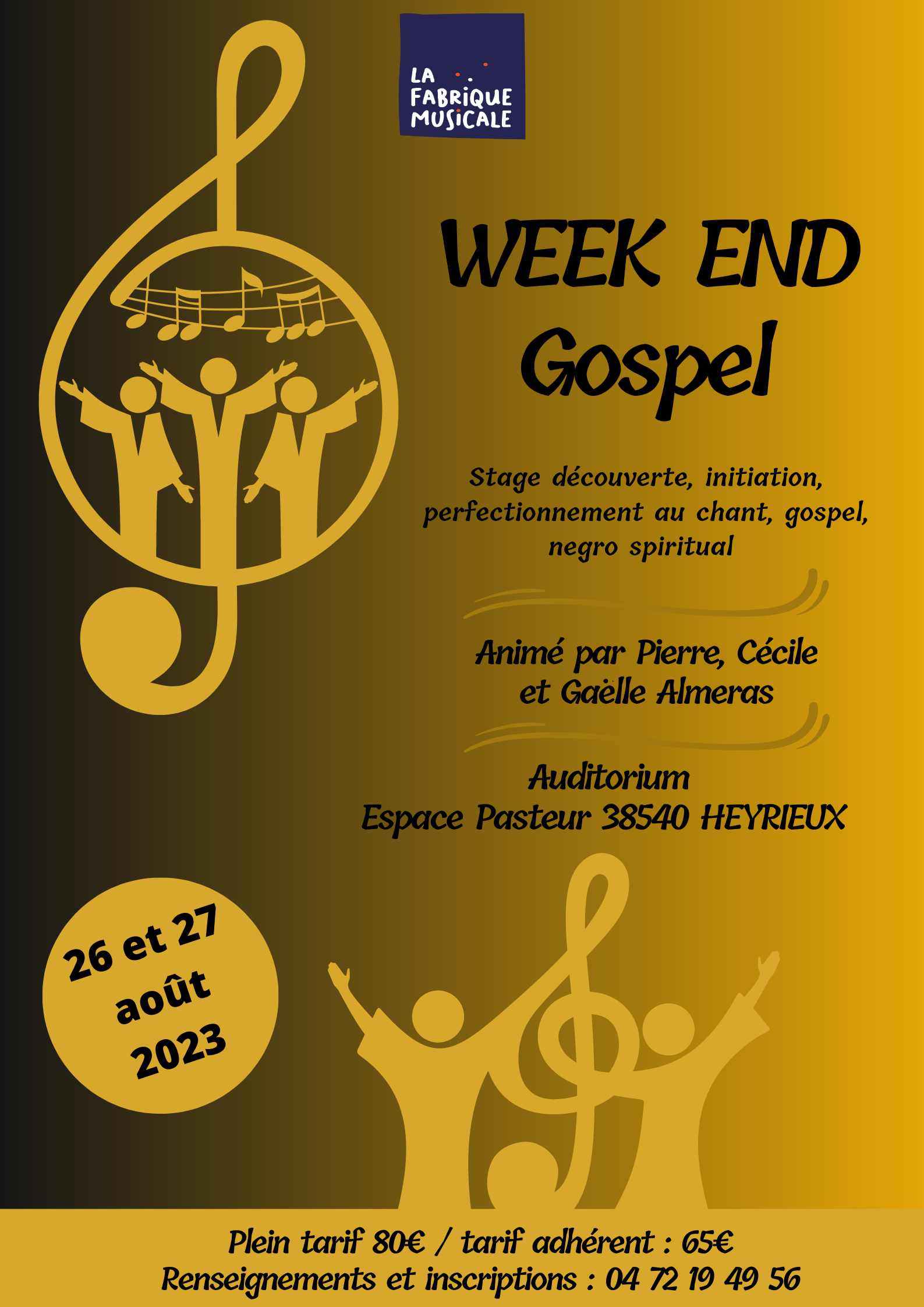 Le week-end des 26 et 27 aout 2023, La Fabrique musicale organise un stage de découverte et d’initiation au chant gospel et negro spiritual. Ce stage de deux jours est ouvert à tous, chanteurs ou novices et est animé par Pierre Alméras, chef de chœur et chanteur spécialiste de cette musique.
