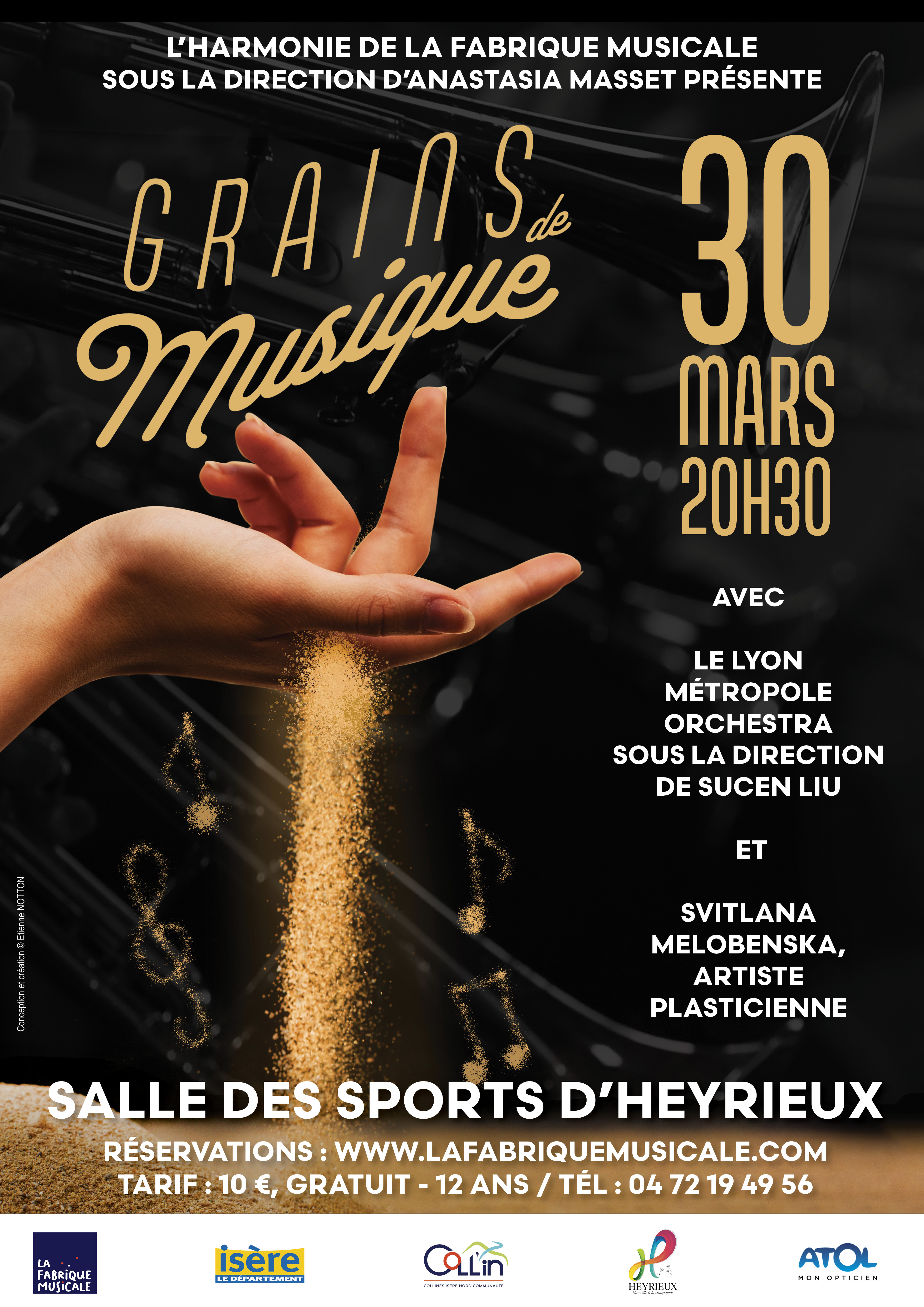 Anastasia Masset, Directrice Artistique et Cheffe d’Orchestre de l’Harmonie de la Fabrique Musicale, sera aux commandes de cette rencontre musicale qui accueillera également une artiste plasticienne renommée internationalement venue d’Ukraine, Svitlana Melobenska, qui illustrera en temps réel grâce à des animations sur sable quelques-unes des pièces présentées par les deux orchestres.
