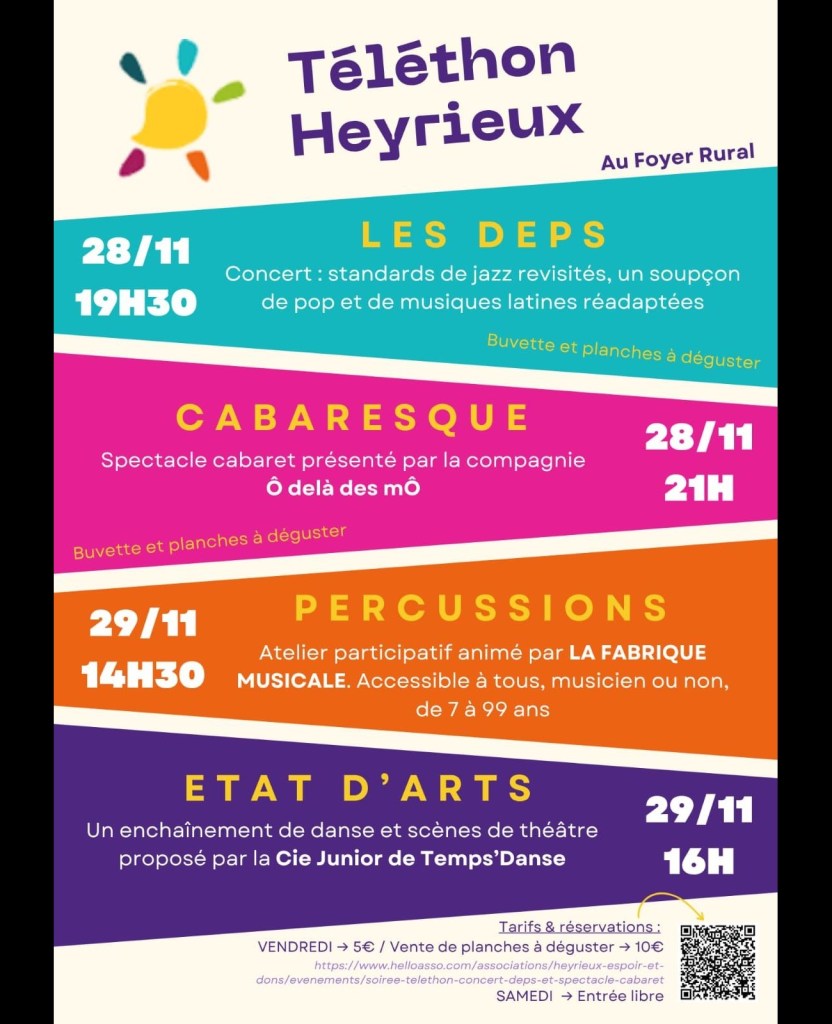 Dans le cadre du Téléthon 2025, la Fabrique Musicale s’associe aux nombreuses animations de l’association Heyrieux Espoir et Don et vous propose le samedi 29/11 de 14h30 à 15h30 un atelier percussions avec des instruments de batucada brésilienne ! ![]()
