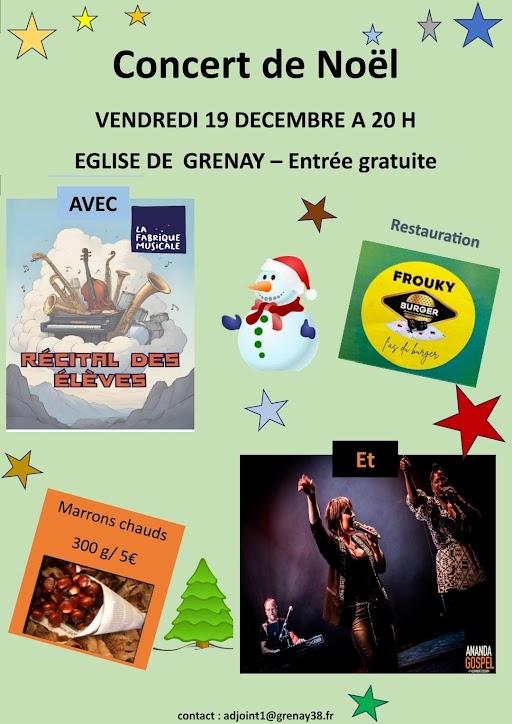 Vendredi prochain 19 décembre 2025 à partir de 20h, plusieurs élèves de la Fabrique Musicale se produiront en concert à l’église de Grenay (38) en première partie d’un concert gospel par le groupe Ananda Gospel.