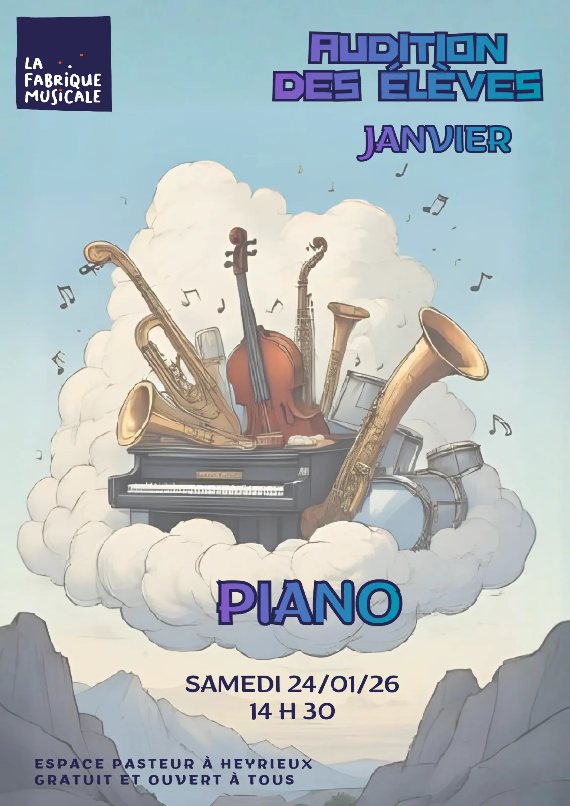 Rendez-vous à l’Espace Pasteur à Heyrieux pour écouter nos élèves, et comme toujours c’est public et gratuit !