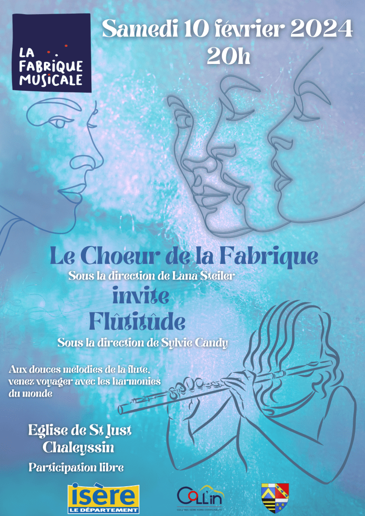 Le 10 février, un répertoire de chants traditionnels du monde, chants classiques et musique actuelle, a séduit le public. Flûtitude, ensemble de flûtes traversières de Lyon, dirigé par Sylvie Candy, a distillé un répertoire original. Les chants ont résonné dans cette belle ambiance et les auditeurs ont pu accompagner le Chœur de La Fabrique sur des refrains de Zazie et Brassens.