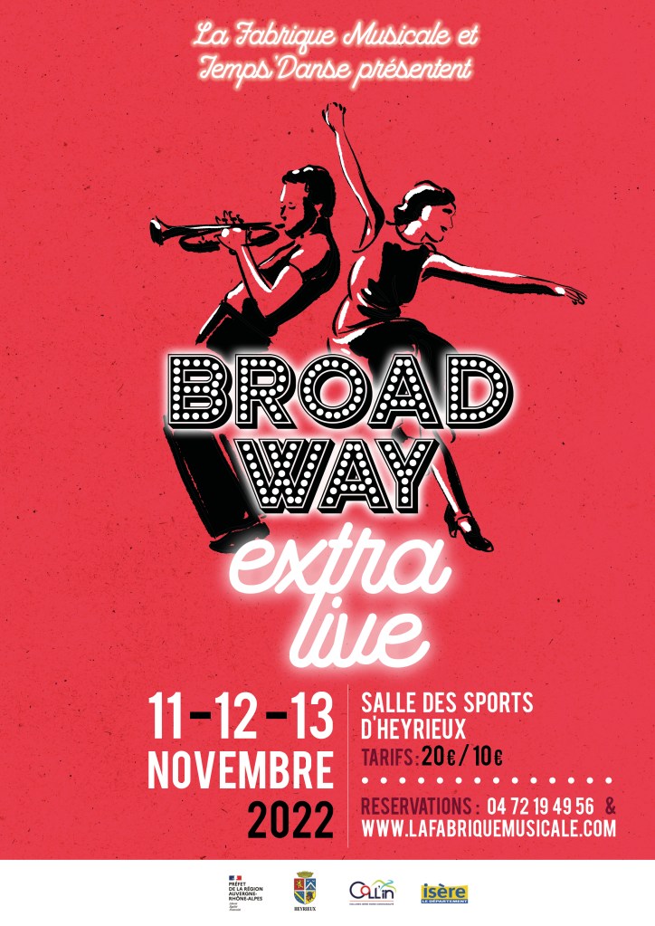 Cinq ans après Broadway Live, dont les trois séries de représentations ont attiré près de 3 000 spectateurs en 2017 et 2018, Temps’Danse et La Fabrique musicale reviennent avec une nouvelle production, version augmentée de leur grand spectacle consacré aux comédies musicales. Musiques et chorégraphies, décors, costumes et création lumière : tout a été repensé pour aller plus loin dans l’ambition artistique du projet. Le dispositif, exceptionnel, réunira près de 200 artistes amateurs et professionnels sur scène : orchestre, choristes, solistes et bien entendu danseurs de tous âges et de toutes disciplines (classique, claquettes, modern jazz, hip hop…). Les décors et les costumes seront réalisés par les habitants dans le cadre d’ateliers participatifs. Des élèves du collège Jacques Prévert d’Heyrieux participeront au spectacle dans le cadre d’une action d’éducation culturelle et artistique conduite avec l’Éducation nationale.