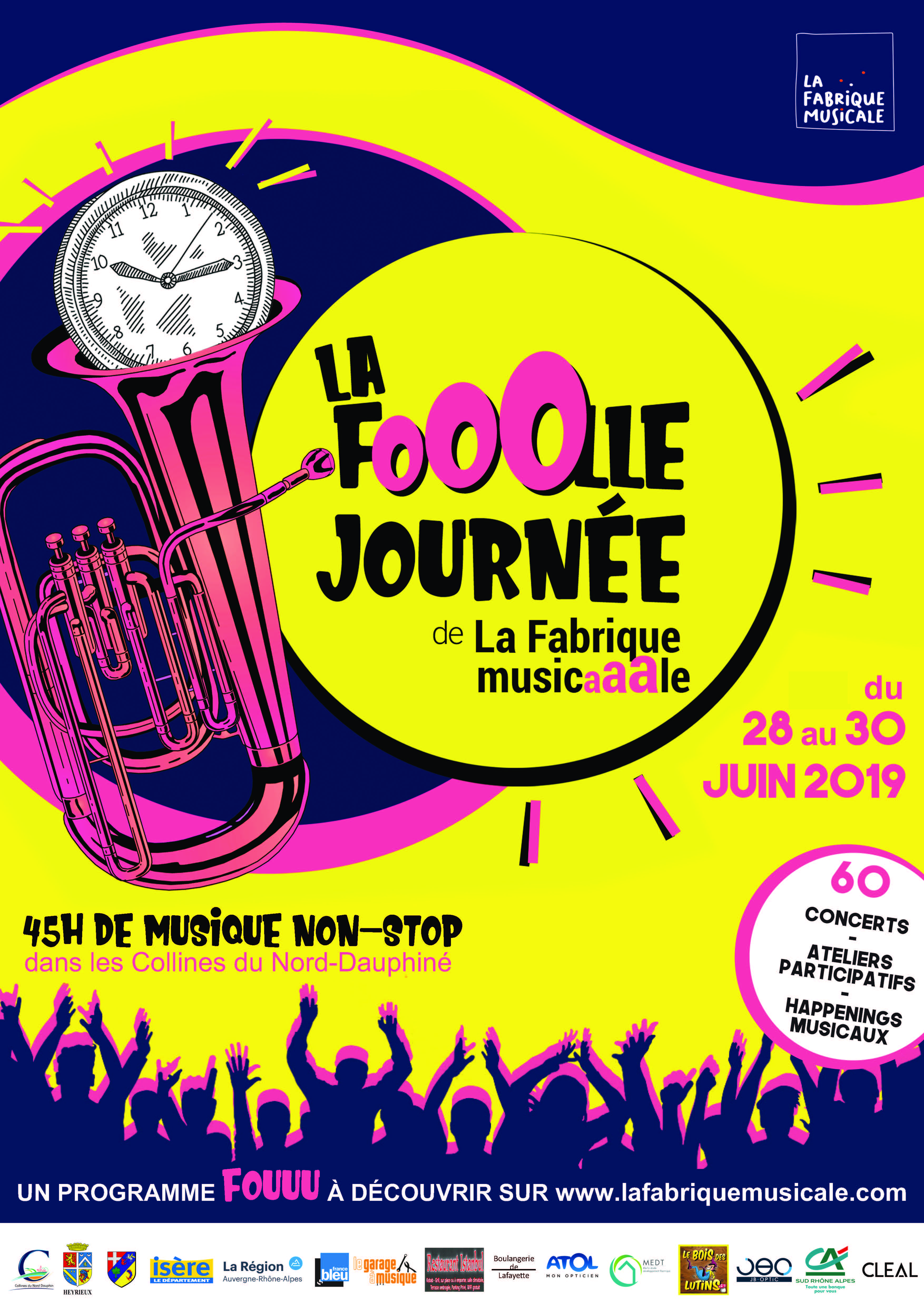 La seconde édition de la Folle journée de la Fabrique musicale se tiendra du 28 au 30 juin 2019 sur tout le territoire des Collines du Nord-Dauphiné. Le concept : 45 h de musique non stop dans des lieux et à des horaires parfois inhabituels. Un florilège d’artistes amateurs et professionnels qui proposeront une soixantaine de concerts, ateliers participatifs et happenings musicaux à toute heure du jour et de la nuit dans des styles très variés. Pendant trois jours, la Folle journée de la Fabrique musicale va mettre en musique toutes les communes des Collines du Nord-Dauphiné : Bonnefamille, Charantonnay, Diémoz, Grenay, Heyrieux, Oytier-Saint-Oblas, Roche, Saint-Georges d’espéranche, Saint-Just Chaleyssin, Valencin.